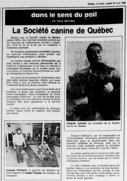 Le premier concours homologué organisé par la Société Canine de Québec s'est tenu dans la grande salle de l’Hotel Hilton de Québec; plus de 320 chiens étaient en compétition. La circulation a été perturbée au Carré d’Youville, nécessitant les services de la Police de Québec!
